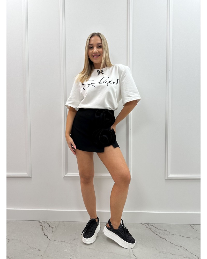 Spódnico–spodenki Róże Belluci od By o la la... to modowy strzał w dziesiątkę dla każdej kobiety, która ceni połączenie komfortu i efektownego designu Na pierwszy rzut oka wyglądają jak klasyczna mini spódnica, jednak ukryte spodenki zapewniają swobodę i wygodę przez cały dzień.