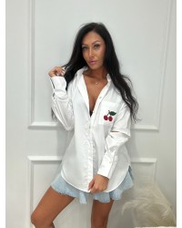 Koszula Wisienki La Milla Różowa — różowa koszula oversize z uroczą aplikacją wisienek na kieszeni. Idealna na co dzień i na wyjątkowe okazje . Uniwersalny rozmiar, modny krój i najwyższa jakość materiału .