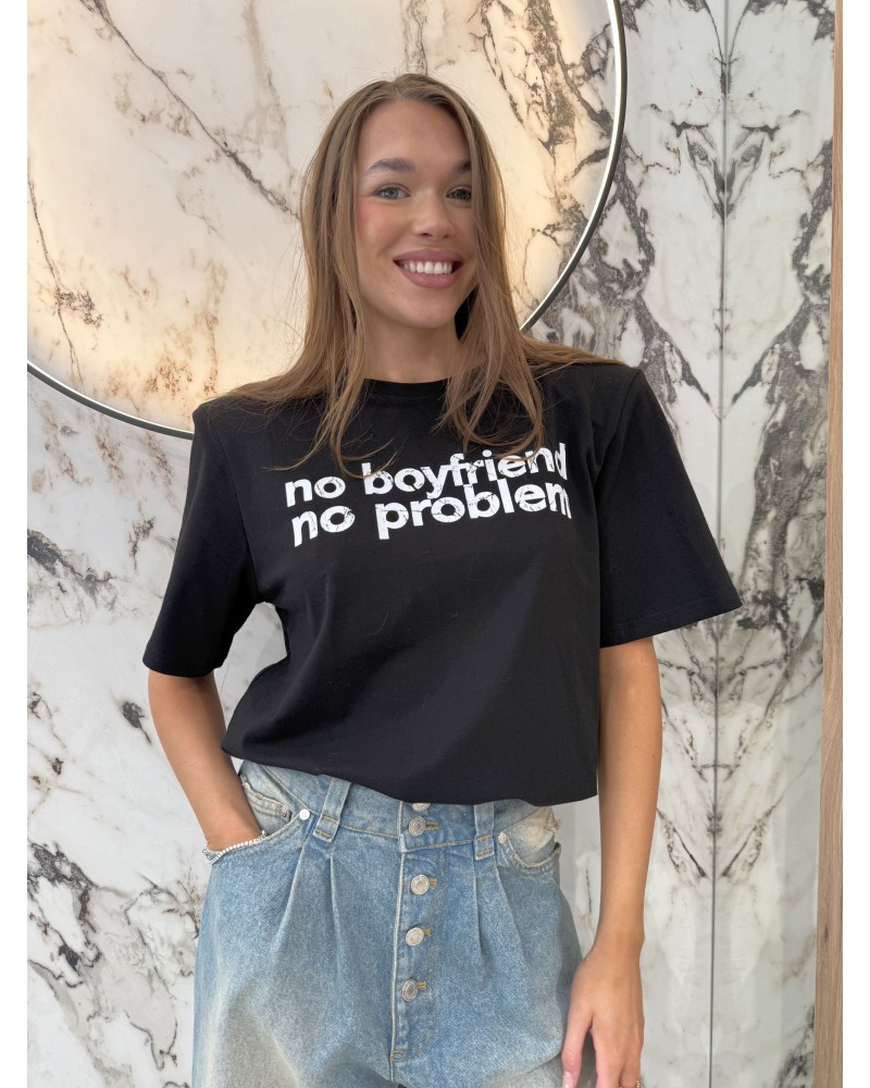 Czarny T-shirt No Boyfriend No Problem – wyrazisty look na co dzień 🖤