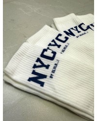 Skarpetki NYC By o la la...! z granatowym napisem 🗽 to must-have dla fanów miejskiego stylu. Wykonane z miękkiej, elastycznej bawełny, świetnie dopasowują się do stopy i zapewniają komfort przez cały dzień. Kontrastowy napis NYC nadaje im charakteru i sprawia, że idealnie pasują do sneakersów, jeansów i casualowych outfitów.