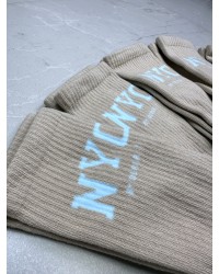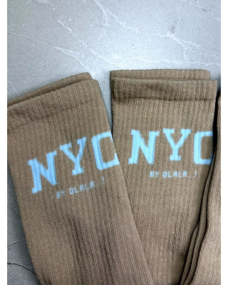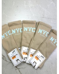 Beżowe skarpetki z napisem NYC 🌆 – stylowe połączenie wygody i miejskiego szyku.