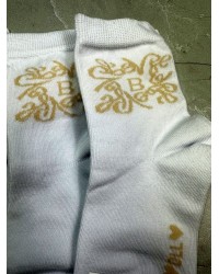 Białe skarpetki z haftem w odcieniu beżu 🤍 – subtelna elegancja na co dzień.