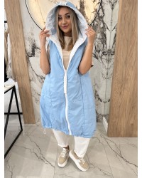 Kamizelka długa By o la la...! w kolorze błękitnym to propozycja dla kobiet, które szukają świeżego i modnego dodatku do codziennych outfitów. Jasny odcień wprowadza lekkość do stylizacji, a wygodny kaptur oraz praktyczne kieszenie czynią ją funkcjonalną i stylową zarazem.