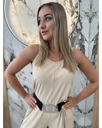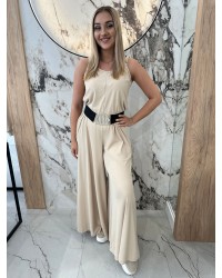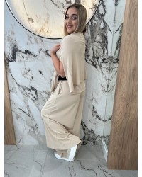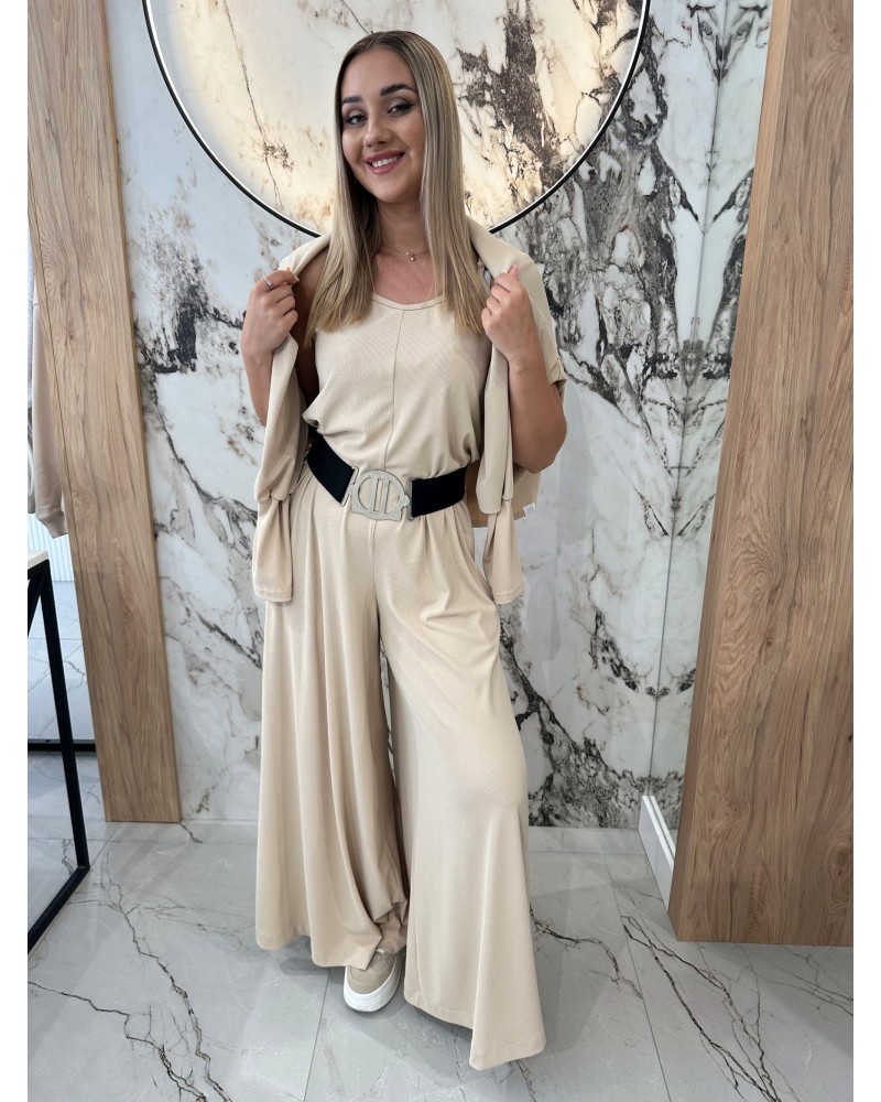Ten wyjątkowy komplet to połączenie komfortu i stylu w najlepszym wydaniu W skład zestawu wchodzi kobiecy kombinezon o swobodnym kroju oraz bluzka z delikatnym, lekko rozszerzanym rękawem, która może służyć jako narzutka – idealna na chłodniejsze dni lub do stworzenia warstwowej stylizacji