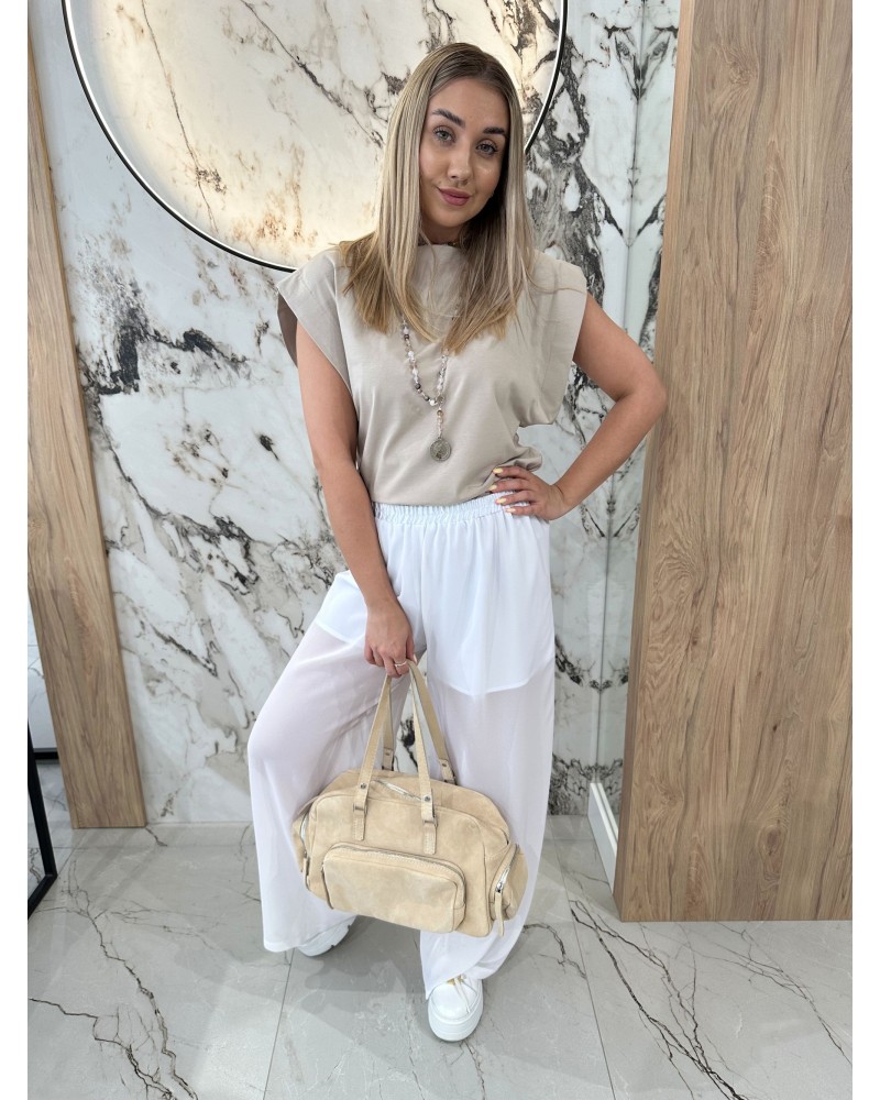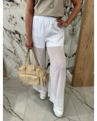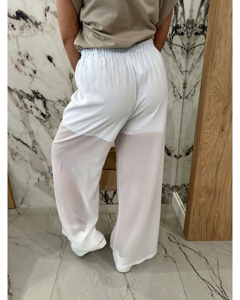 Te przewiewne spodnie z transparentnego materiału to must-have na cieplejsze dni. Luźny krój, elastyczny pas i lekkość tkaniny gwarantują wygodę noszenia, a jednocześnie nadają stylizacji nuty kobiecej zmysłowości