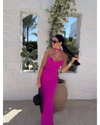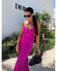 Ta niezwykle kobieca sukienka maxi to propozycja dla kobiet, które cenią elegancję i ponadczasowy styl  Fason z cienkimi ramiączkami i subtelnym wycięciem pięknie eksponuje dekolt oraz ramiona, podkreślając kobiecą sylwetkę. Dopasowany krój wydłuża optycznie nogi i dodaje pewności siebie