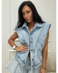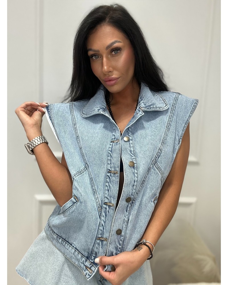 Stylowy komplet z jeansowym bezrękawnikiem i spodniami o luźnym kroju 👖🧥 Idealny na co dzień, do miasta i na luzie z klasą ✨