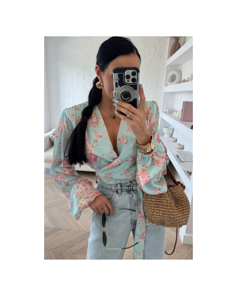 Romantyczna koszula z kopertowym dekoltem i uroczym kwiatowym wzorem 🌸✨ Idealna na wiosnę, lato i codzienne stylizacje!