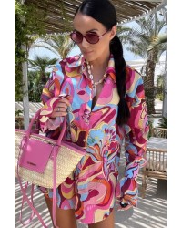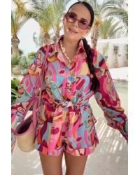 Ten zestaw to totalny hit letnich stylizacji!  Koszula z kołnierzykiem i długim rękawem świetnie łączy się z krótkimi szortami, tworząc harmonijną i stylową całość. Print przyciąga spojrzenia i dodaje charakteru każdemu lookowi