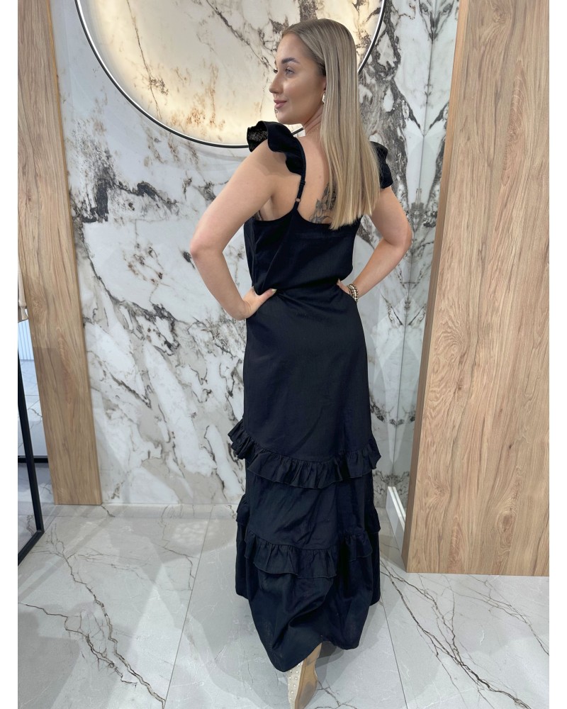 Letnia sukienka maxi z uroczymi falbanami i wiązanymi ramiączkami  Idealna na wakacje, spacery i ciepłe dni