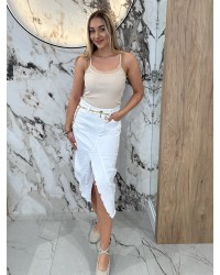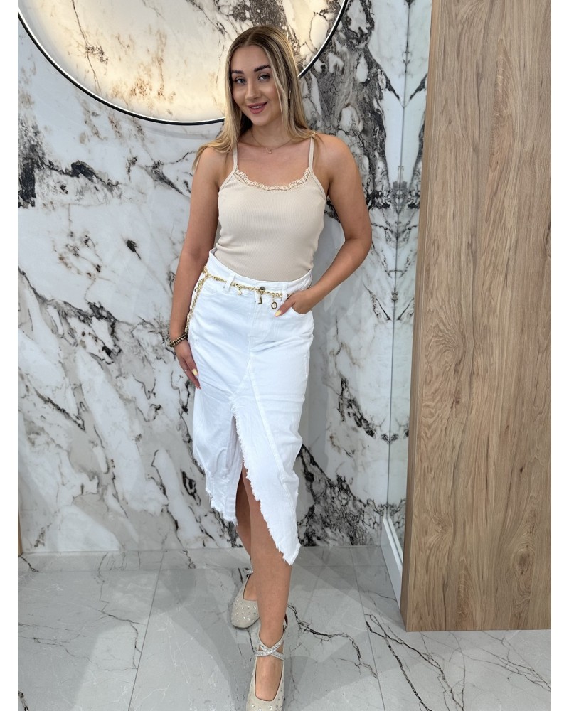 Top prążek z koronkowym dekoltem By o la la...! beżowy