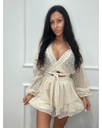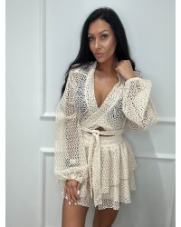 Komplet ażurowy spódniczka+ bluzka La Milla beżowy