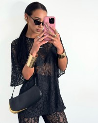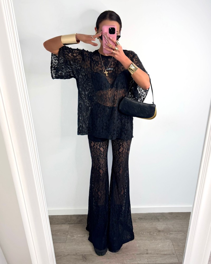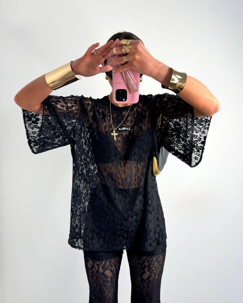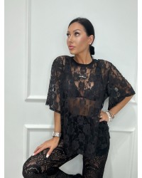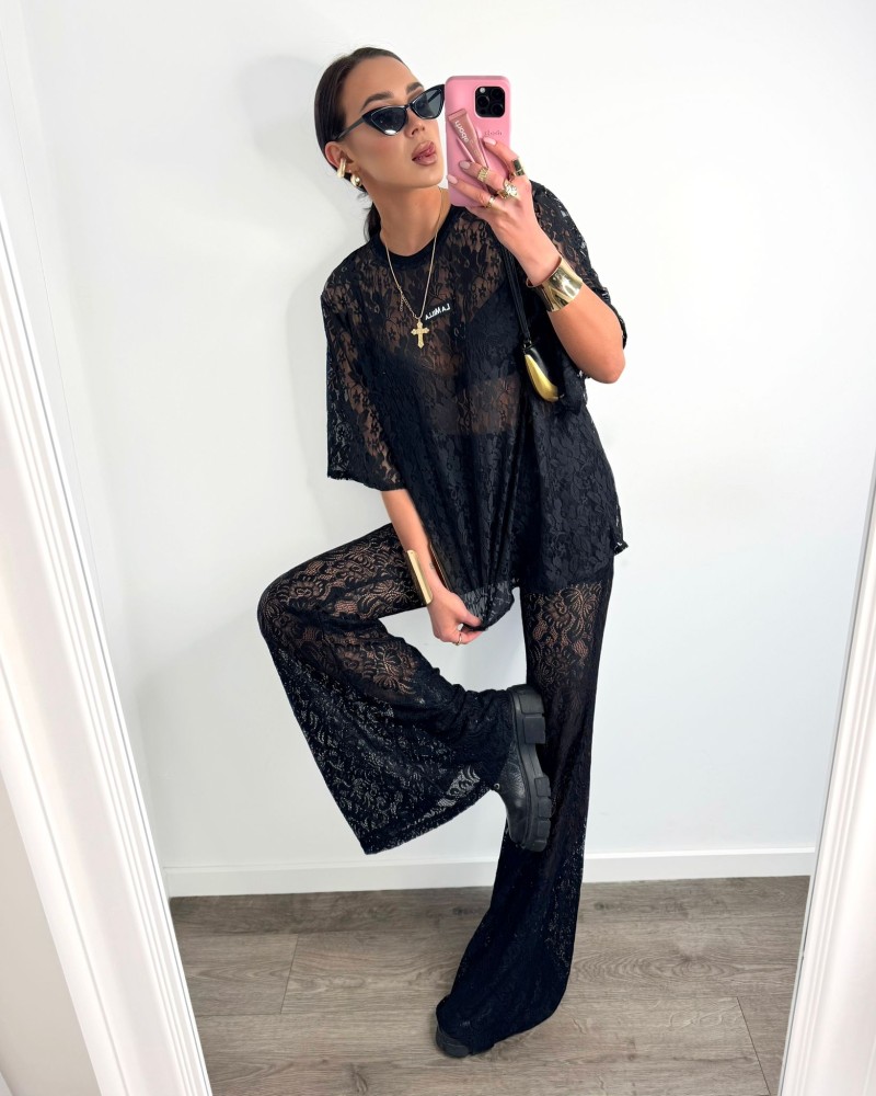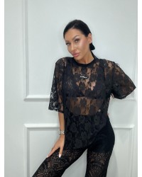 Koronkowy t-shirt o luźnym kroju  Zmysłowy, stylowy i idealny na lato lub wieczorne wyjście