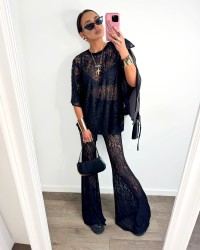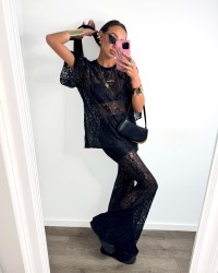 Ten koronkowy t-shirt to wyjątkowe połączenie zmysłowości i miejskiego stylu  Wykonany z lekkiego, transparentnego materiału o kwiatowym wzorze, idealnie sprawdzi się jako efektowny element stylizacji na wieczór lub plażowe wyjście