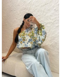 Dzięki efektownemu fasonowi z bufiastym rękawem i asymetrycznemu wykończeniu przyciąga spojrzenia i dodaje stylizacjom wyjątkowego charakteru. Zwiewny materiał i kolorowy, owocowy wzór sprawiają, że ta bluzka idealnie sprawdzi się na wakacjach, spacerach czy letnich spotkaniach przy kawie .