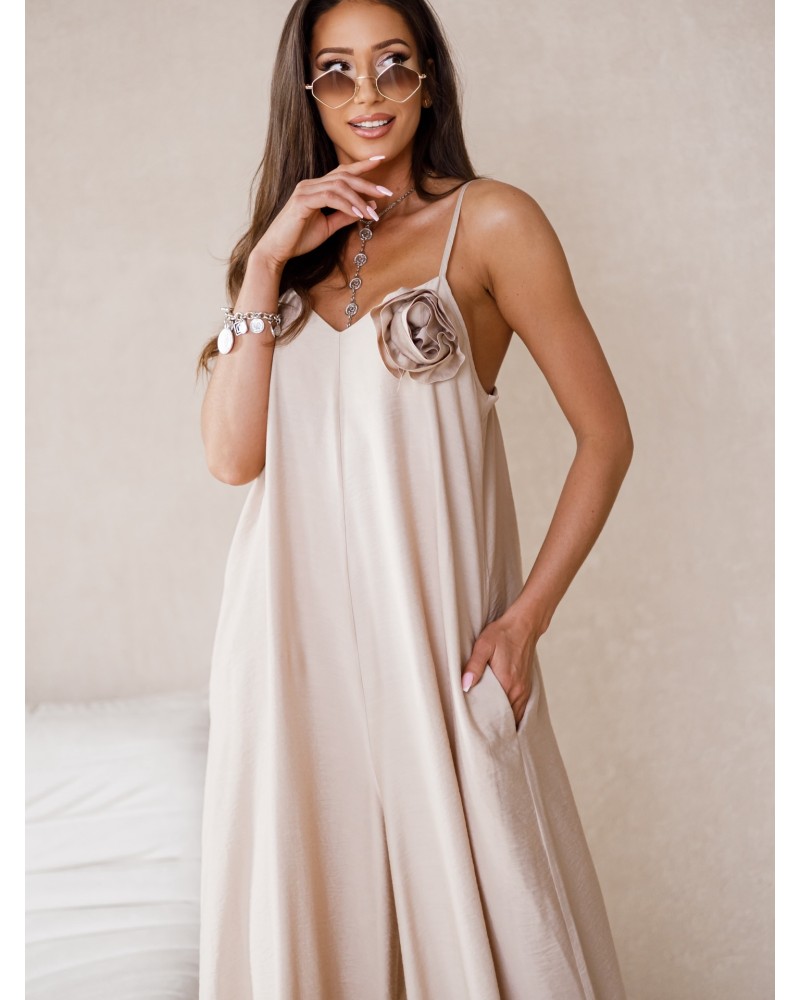 Kombinezon na ramiączkach z różą By o la la...! beżowy