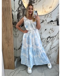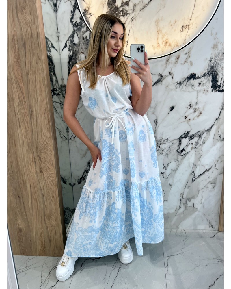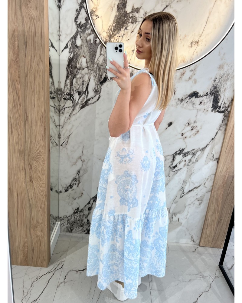 Poczuj lekkość i kobiecy urok z tą wyjątkową sukienką na ramiączkach! Ta luźna, zwiewna propozycja z subtelnym, dekoracyjnym wzorem to idealny wybór na lato, spacery po plaży lub romantyczne wieczory na tarasie . Delikatne wiązania na ramionach dodają uroku i pozwalają na regulację dopasowania, a rozkloszowany krój z falbaną u dołu zapewnia swobodę ruchów i efektowny wygląd .
