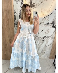 Zwiewna sukienka na ramiączkach z romantycznym wzorem . Idealna na lato, wakacje i ciepłe dni .