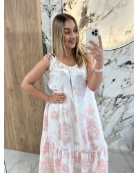 Zwiewna sukienka na ramiączkach z romantycznym wzorem . Idealna na lato, wakacje i ciepłe dni .