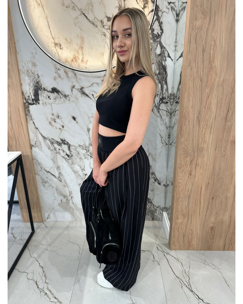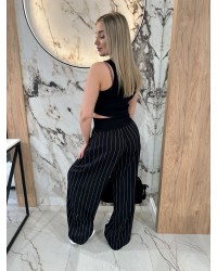 Postaw na połączenie wygody i nowoczesnego stylu! Te eleganckie spodnie z szerokimi nogawkami i wysokim, elastycznym pasem zapewniają nie tylko maksymalny komfort, ale też doskonałe dopasowanie do sylwetki. Materiał układa się miękko i swobodnie, dzięki czemu spodnie pięknie prezentują się w ruchu.