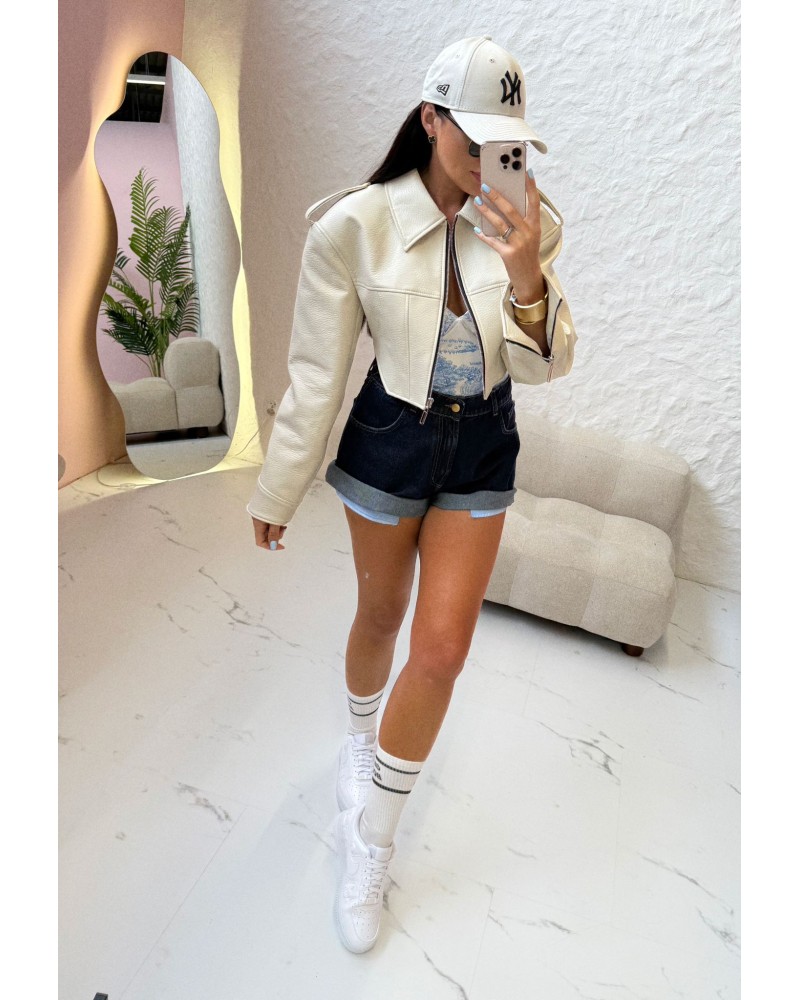 Stylowa ramoneska o dopasowanym kroju z efektownym wykończeniem i suwakami – must-have w każdej garderobie.