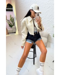 Postaw na ponadczasowy styl i odrobinę rockowego pazura z tą modną ramoneską! Krótki, dopasowany krój pięknie podkreśla sylwetkę, a detale w postaci suwaków na rękawach oraz ozdobnych przeszyć nadają całości wyjątkowego charakteru. Idealna do miejskich stylizacji – świetnie komponuje się z jeansami, szortami czy sukienkami. To doskonały wybór na chłodniejsze dni i wieczorne wyjścia. Jeśli szukasz połączenia stylu i wygody – właśnie ją znalazłaś.