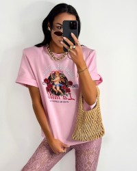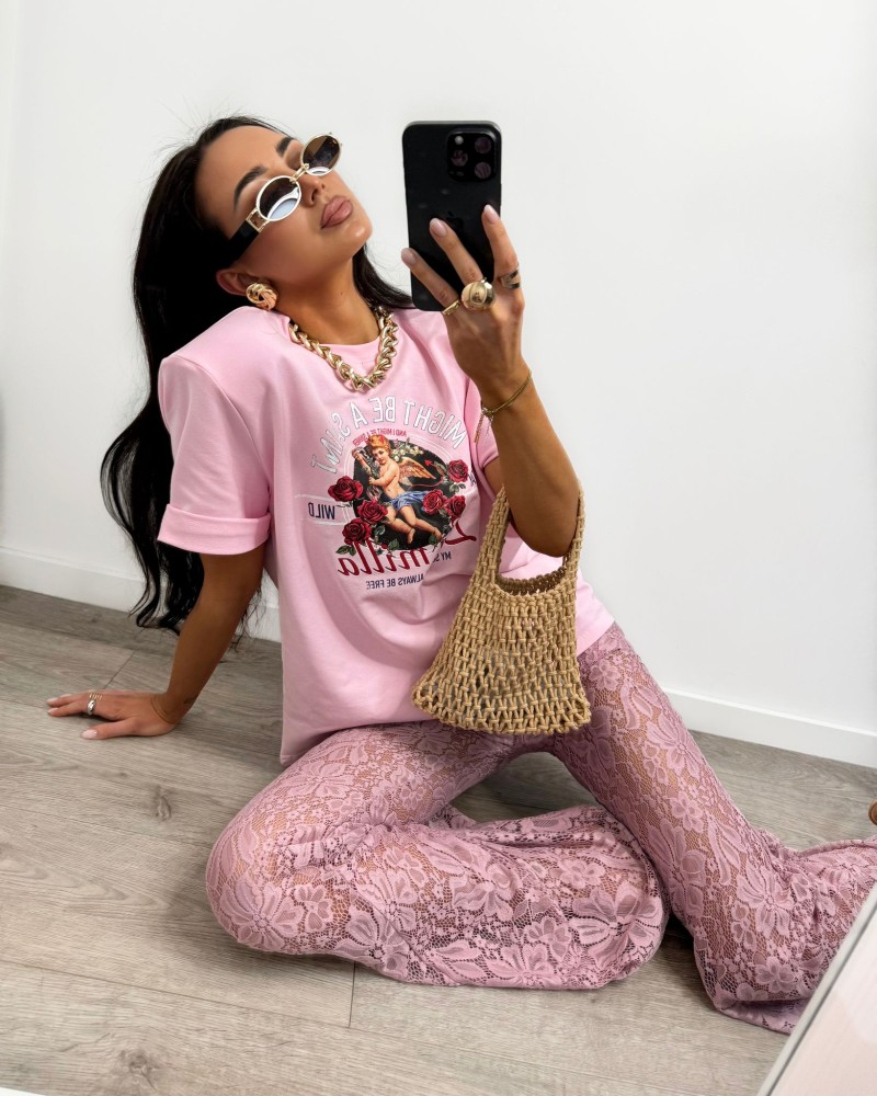 T-shirt z aniołkiem i kwiatowym nadrukiem w stylu vintage – idealny wybór dla miłośniczek romantycznych, ale wyrazistych stylizacji 🌹